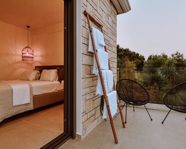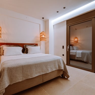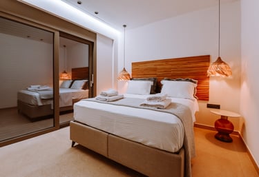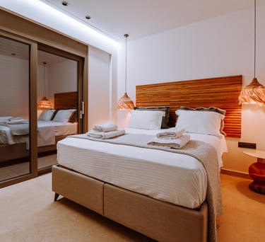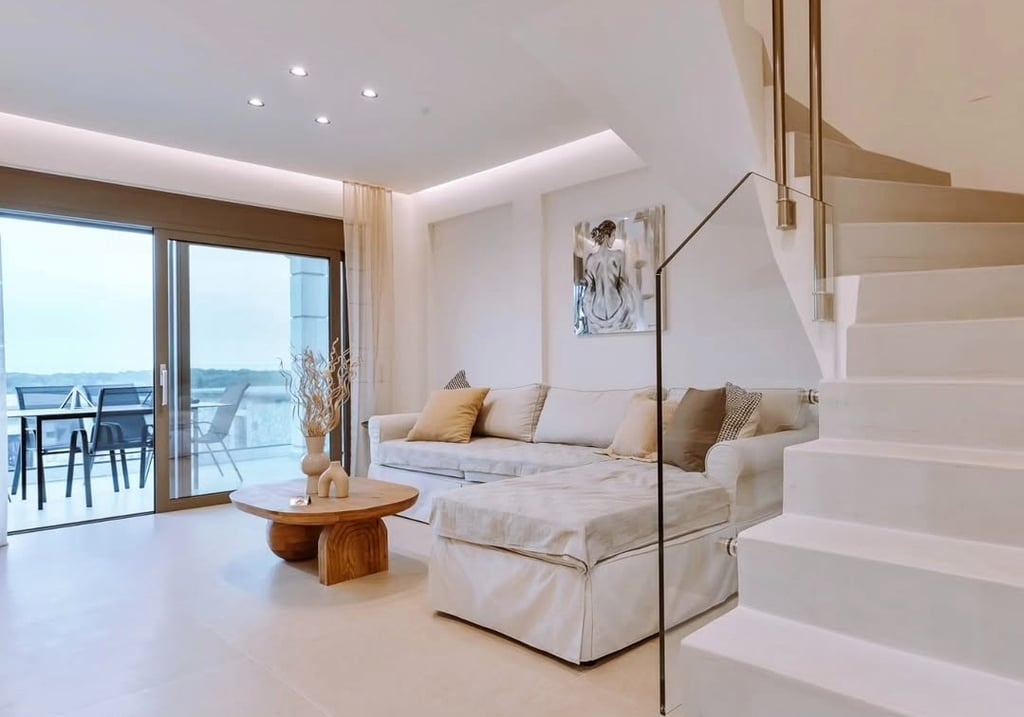 Our spacious maisonette offers 2 bedrooms, 2 bathrooms, and large balconies, making it perfect for families or couples. With expansive living areas and modern amenities, it provides a comfortable atmosphere to relax and enjoy the view, ensuring a memorable stay.