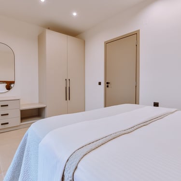 Our spacious Holiday Homes offers 2 Bedrooms, 2 bathrooms, a fully equipped kitchen and large balconies, making it perfect for families or friends. With expansive living areas and modern amenities, it provides a comfortable atmosphere to relax and enjoy the environment surrounded olive trees and nature, ensuring a memorable stay.
